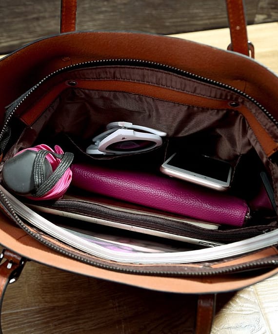 The internal structure of the bag: Zipper pocket, mobile phone bag, ID bag, sandwich zipper bag